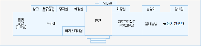 미디어체험방, 학생자치실, 꿈활동방, 요리사방, 메이커스페이스A, 메이커스페이스B, 그린movie