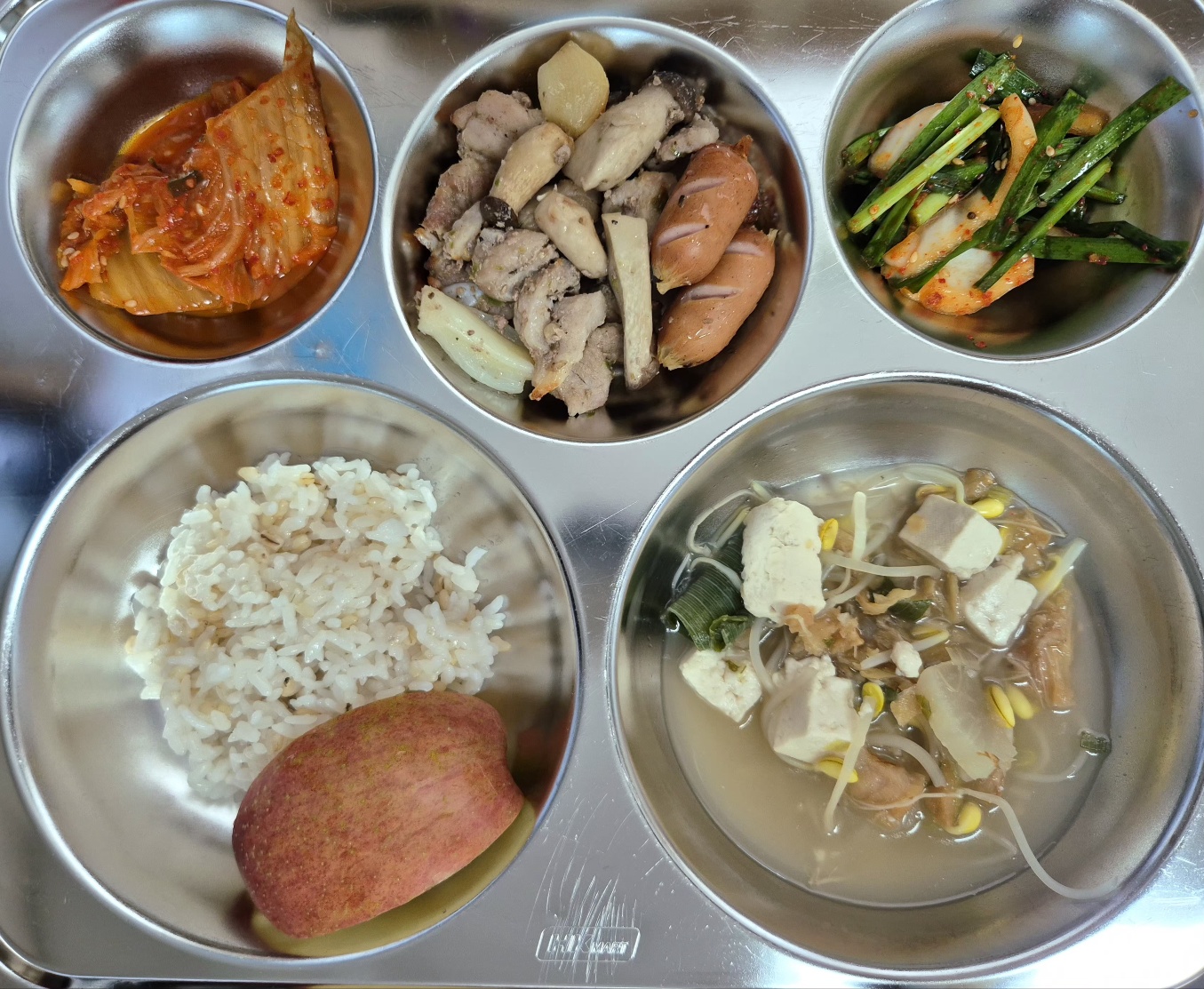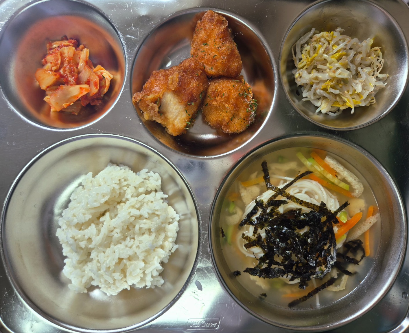 찹쌀밥 잔치국수(소)(5.6) 스윗소코순살치킨(1.5.6.15.16.18) 숙주나물무침(5.6.) 배추김치(9) * 에너지/단백질/칼슘/철 597.1/28.0/223.1/3.0
